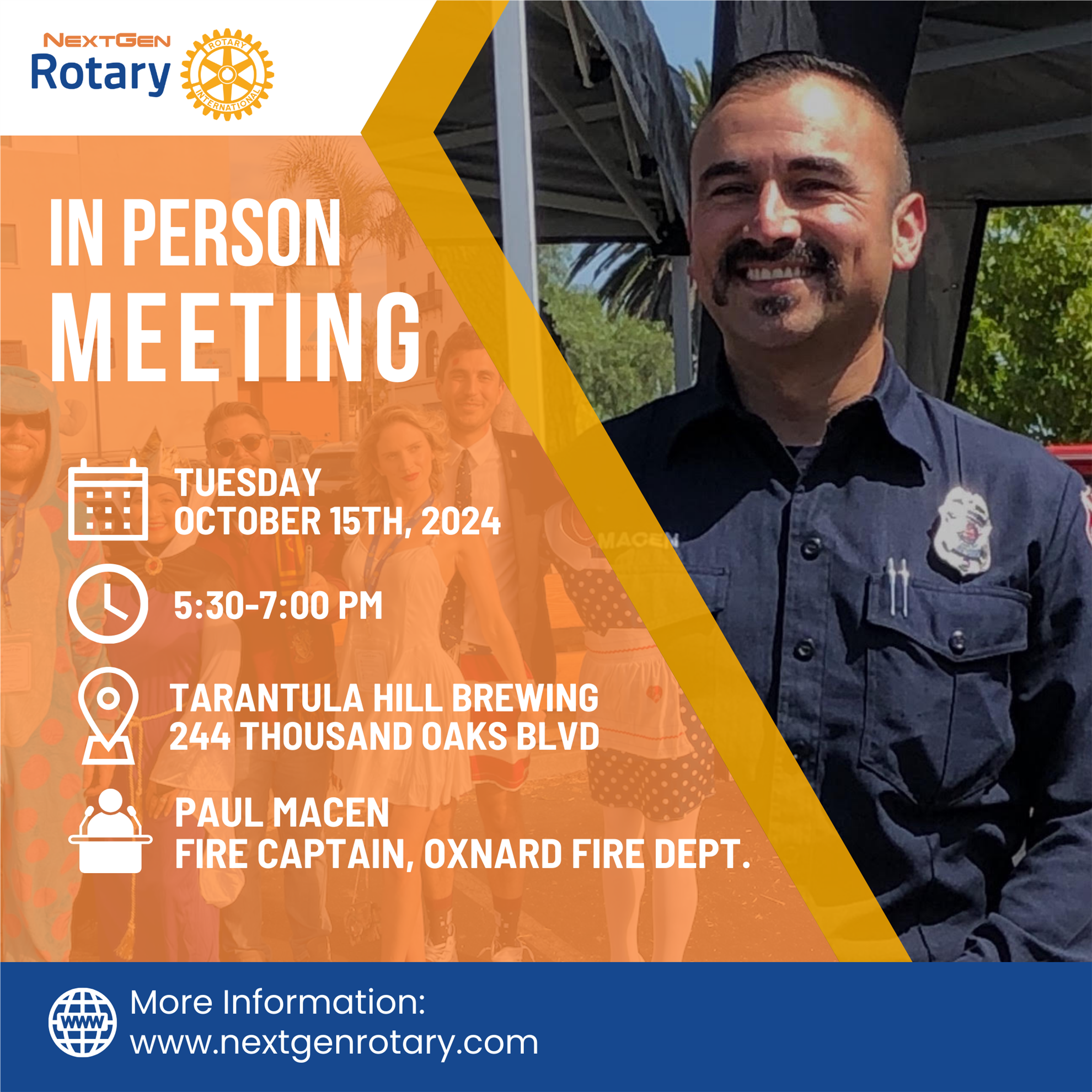 Join us at Tarantula Hill Brewing Co. on 10/15 from 5:30-7:00 PM as we have Paul Macen, Fire Captain from the Oxnard Fire Department, speaking.